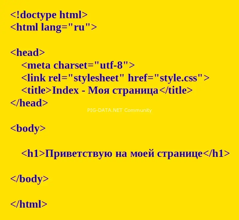 Начнем с определения типа документа и языка вашего сайта в теге <html>. Ниже находится head, или «шапка» вашего сайта, в которой вы можете задать кодировку символов (в случае с русским рекомендую utf-8), прикрепить дополнительные листы CSS (они понадобятся, чтобы придать вашему веб-сайту более интересный вид), или, например, тег title, который позволяет указать заголовок на вкладке браузера.