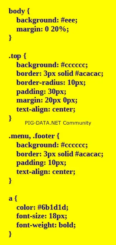 Мы обращаемся ко всему телу именем «body», а к классам по их индивидуальному имени, которому предшествует точка. В случае с классами «menu» и «footer» я дал им одинаковые свойства, поэтому не разбивал их на две фигурные скобки, а вставлял после запятой. Для элементов <a> в нашем файле HTML я не давал им специальных классов или идентификаторов (id), поэтому я ссылаюсь непосредственно на сам тег. Однако следует помнить, что в этом случае каждая ссылка на вашем сайте будет оформлена таким образом.