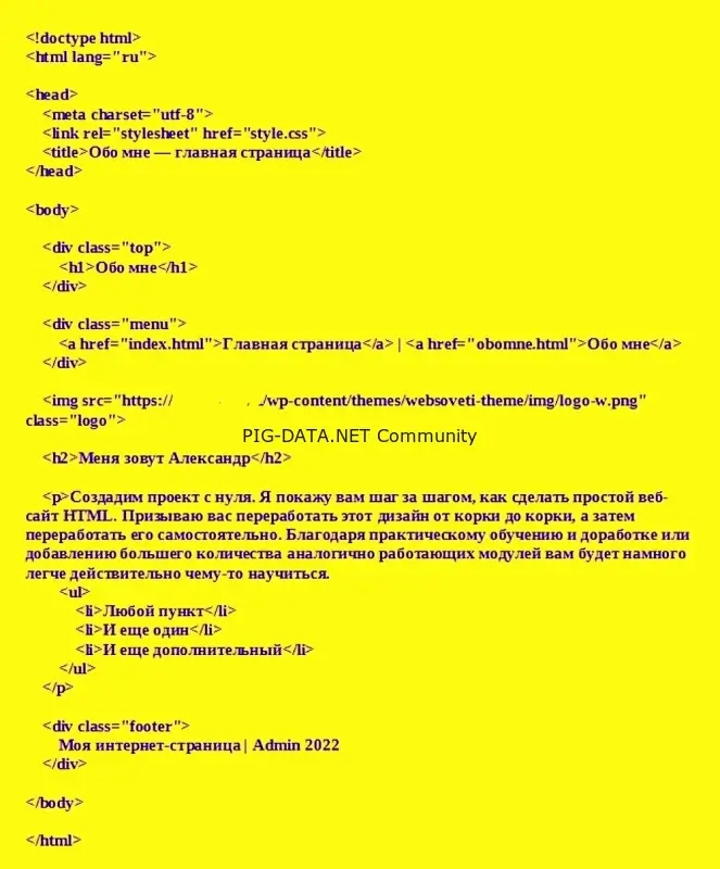 Фактически мы копируем предыдущий файл и меняем значение title и заголовок страницы (h1). Контент, в который я добавил маркированный список (элементы <li>, включенные в тег <ul>) и логотип websoveti.ru, также был изменен. В дополнение к пути к файлу я также добавил класс логотипа в атрибут «src». Этот класс имеет определенное значение поля, поэтому добавьте следующий код на лист CSS: